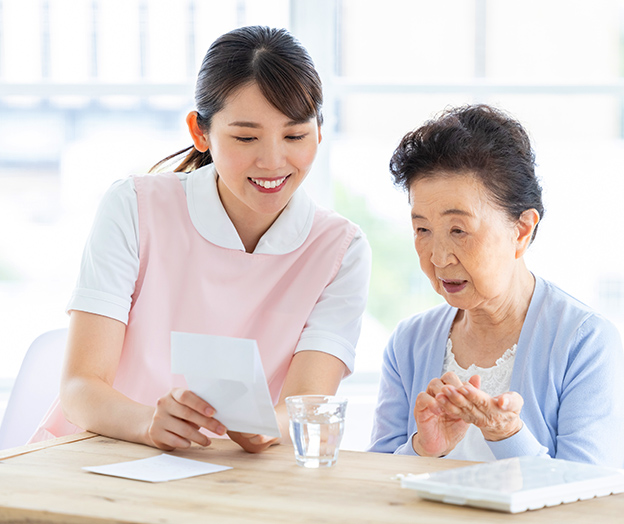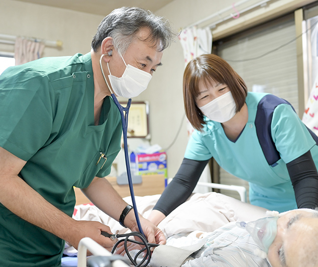 24時間365日対応の訪問看護ステーションを併設。住み慣れたご自宅で安心して暮らせるように、看護師が訪問して医療的な処置、管理を行います。